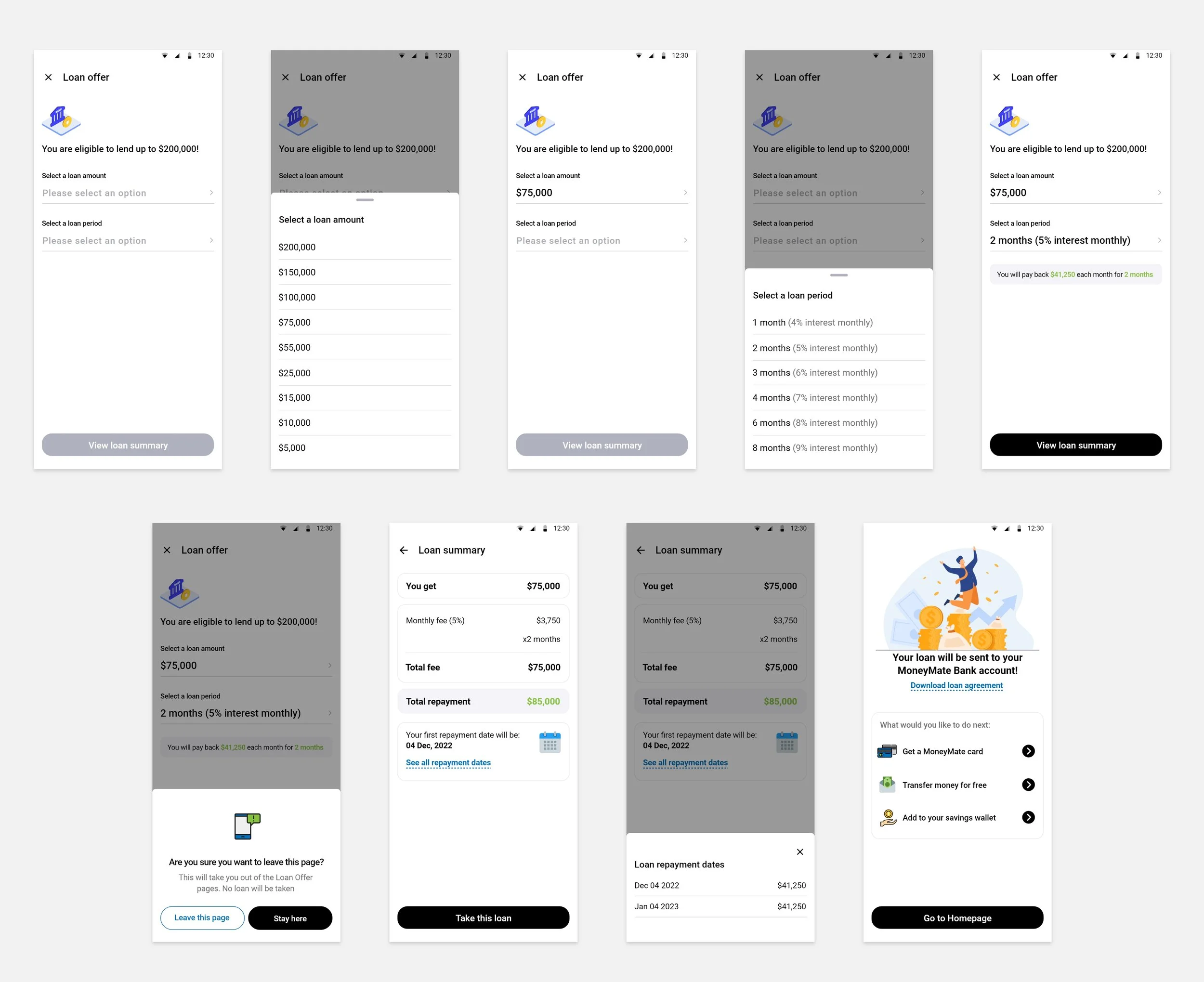 As we were also trying to introduce our customer base to our banking services, the secondary goal was to identify opportunities within the lending flow to nudge users towards using banking features.