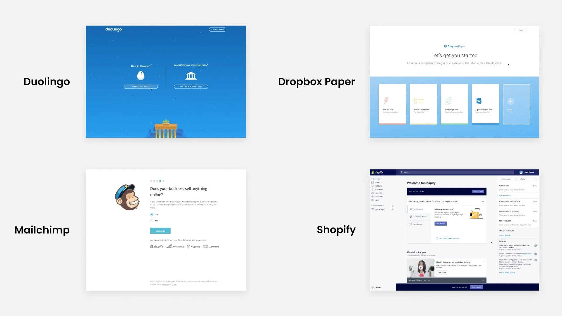 In addition to learnings from the teardown, I conducted competitive analysis of other product onboarding processes. I compared and identified the differentiating factors as well as areas where we believed our new experience would shine brighter.