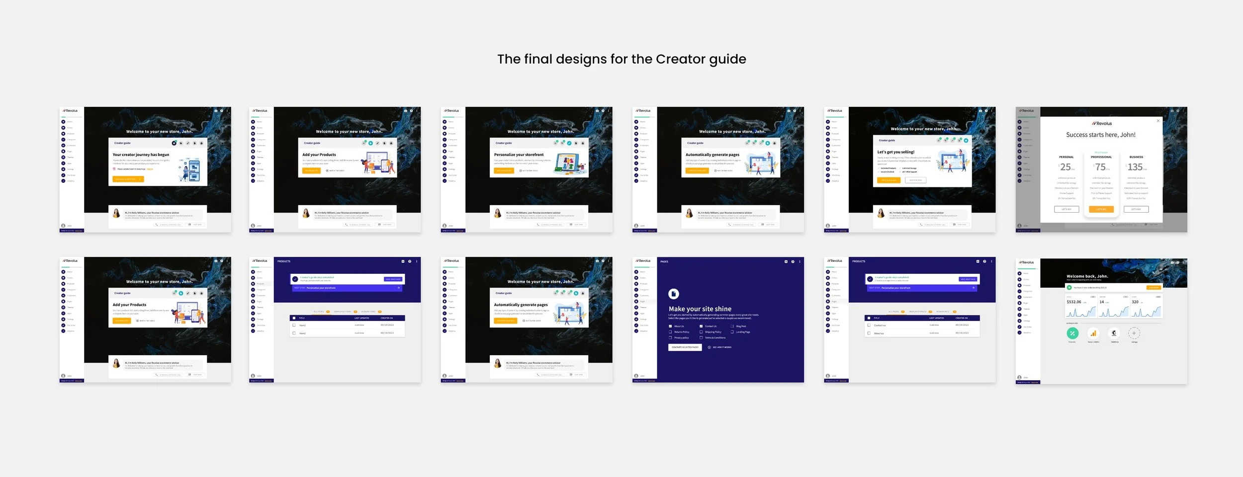 Revolus lovingly refers to its thousands of users as "Creator", because they've all created their own online businesses. It was only natural to call the experience guiding them to become creators the "Creator Guide".